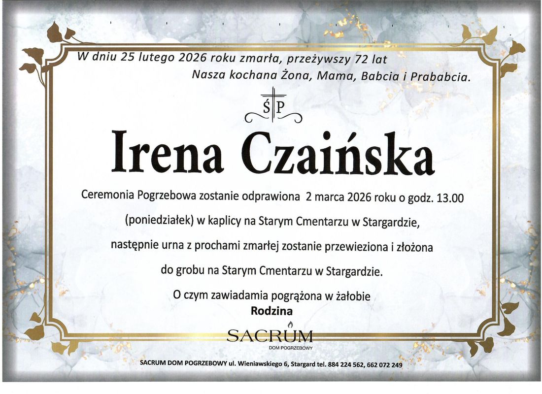 Ś. P. Irena Czaińska